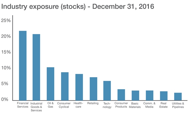 For 2016, the fund had a total return of 6.7%. For context, the Canadian bond market returned 1.7% (FTSE TMX Canada Universe Bond Index), Canadian stocks were up 21.1% (S&P/TSX Composite Index) and global stocks gained 4.9% (MSCI World Index $Cdn).
