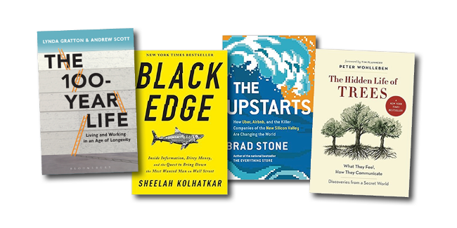 This year’s list is particularly diverse, from talking trees to the origins of Uber and Airbnb to insider trading.