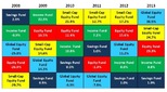 The benefits of diversification - no explanation required. The table was inspired by a blog from Canadian Couch Potato.